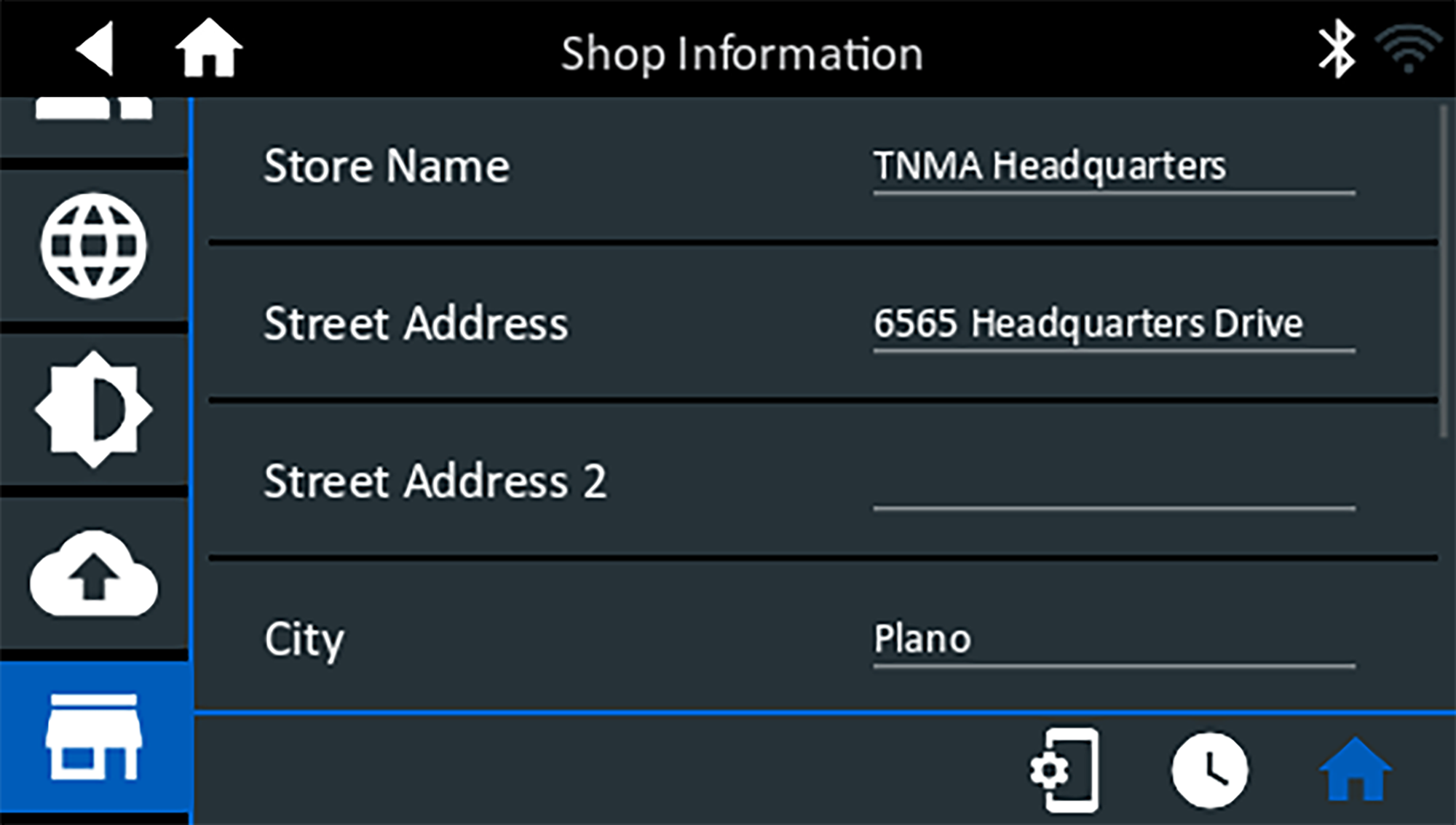 Use the onscreen keypad to enter the dealer/store name, address and phone number.